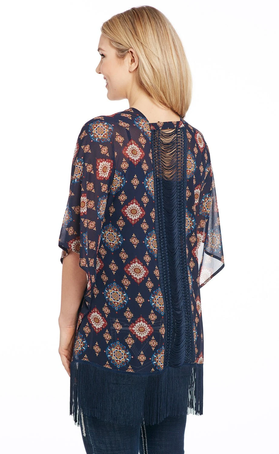 Cowgirl Up Womens Navy Polyester Kimono Lace Sweater