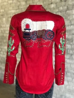 Popular among cowboys and cowgirls, Kimes Ranch’s product deliver durability and comfortableness for the trail, ranch or city. This particular item, made from 60% cotton/30% coolmax/8% poly/2% spandex material blend features a button down front, moisture-wicking fabric, and single pocket at left chest.