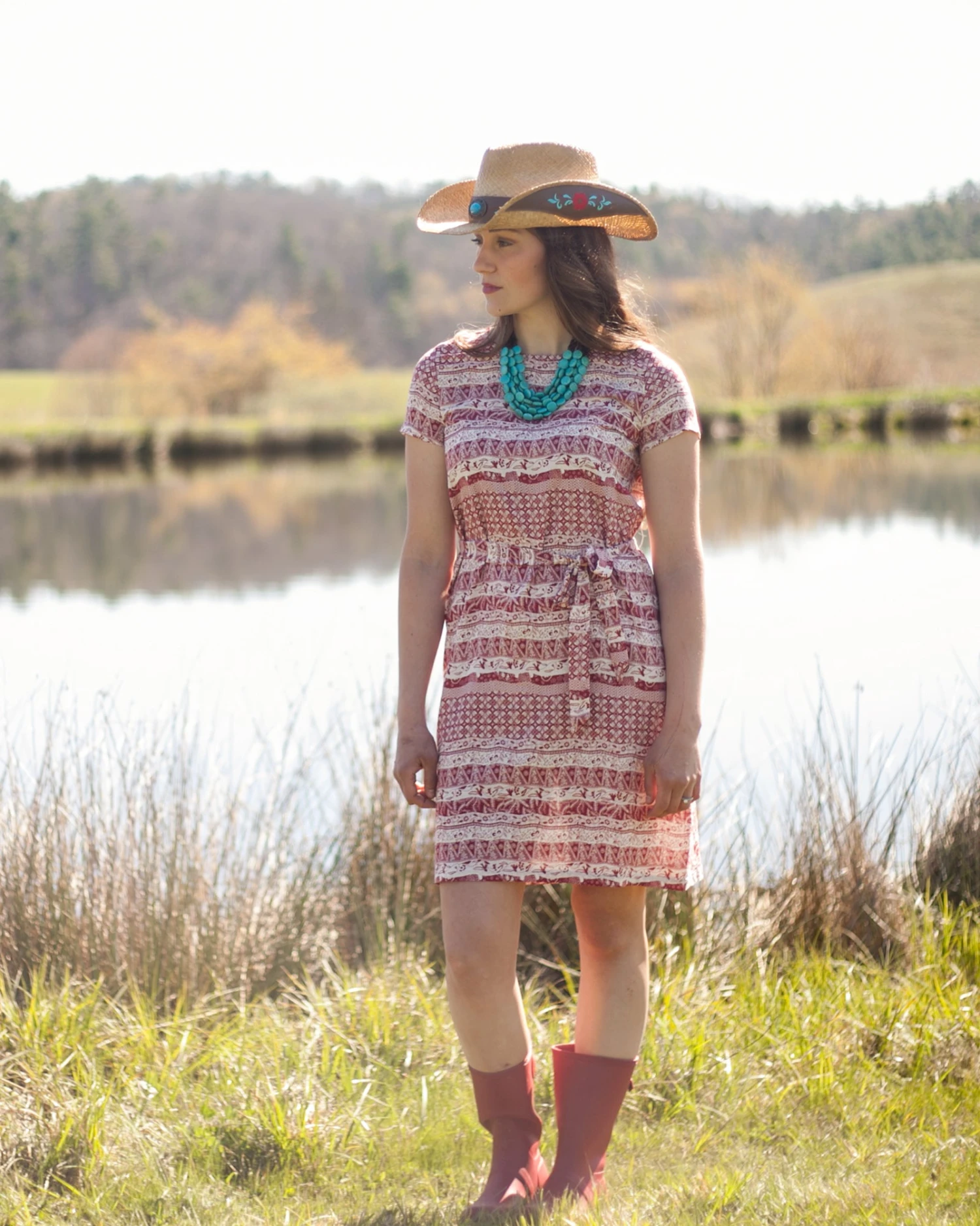 Outback Trading Company designs apparel that works for you during all the seasons. Whether you’re looking for boots, saddle bags, or water repellent wear, Outback has the item for you. This particular item, made from 100% cotton features a scoop neckline, waist tie, and lovely pattern.