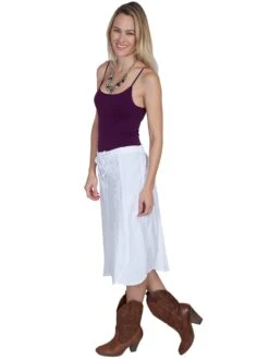 To add a bright, bold statement piece to your wardrobe, look no further than the Scully Cantina Collection. Each handbag or garment is designed with a unique twist on classic western wear style, often featuring design details such as soutache embroidery, tiers, or ruffles. This item features 100% peruvian cotton, and crochet band. It’s perfect for the western-loving woman.