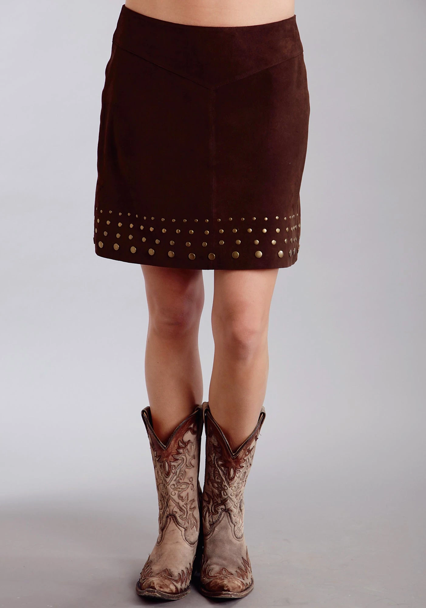 Stetson Ladies Brown Leather Suede Lamb Studded Skirt 6