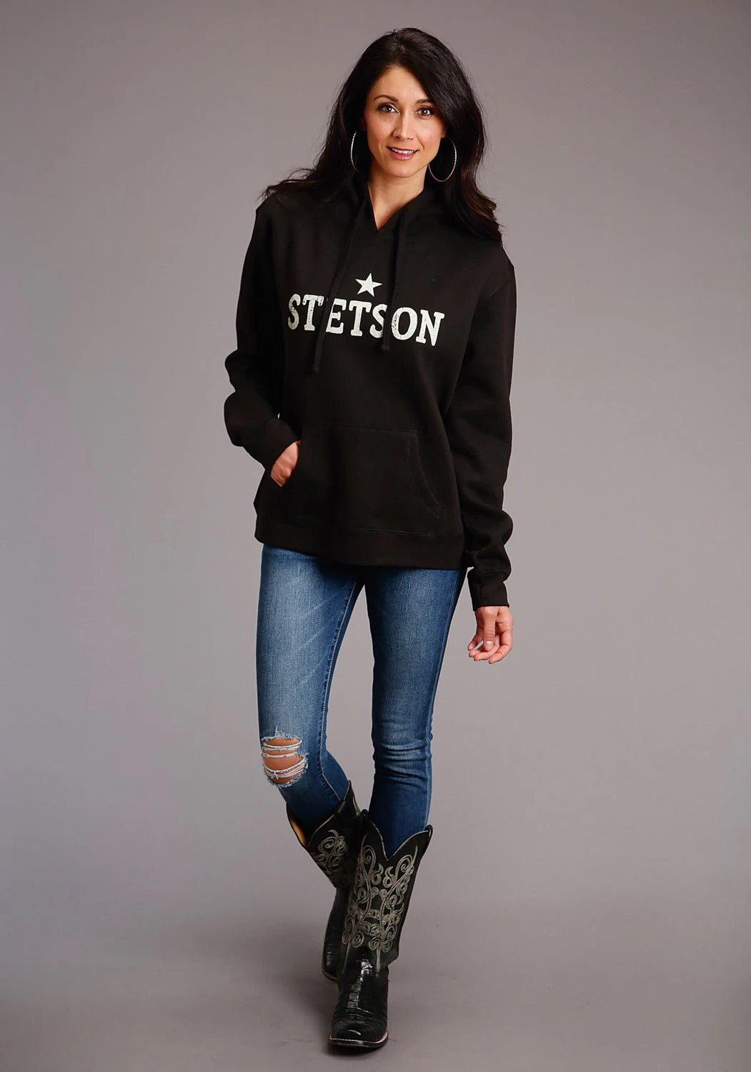 Stetson Womens Black Cotton Blend Star Logo Hoodie