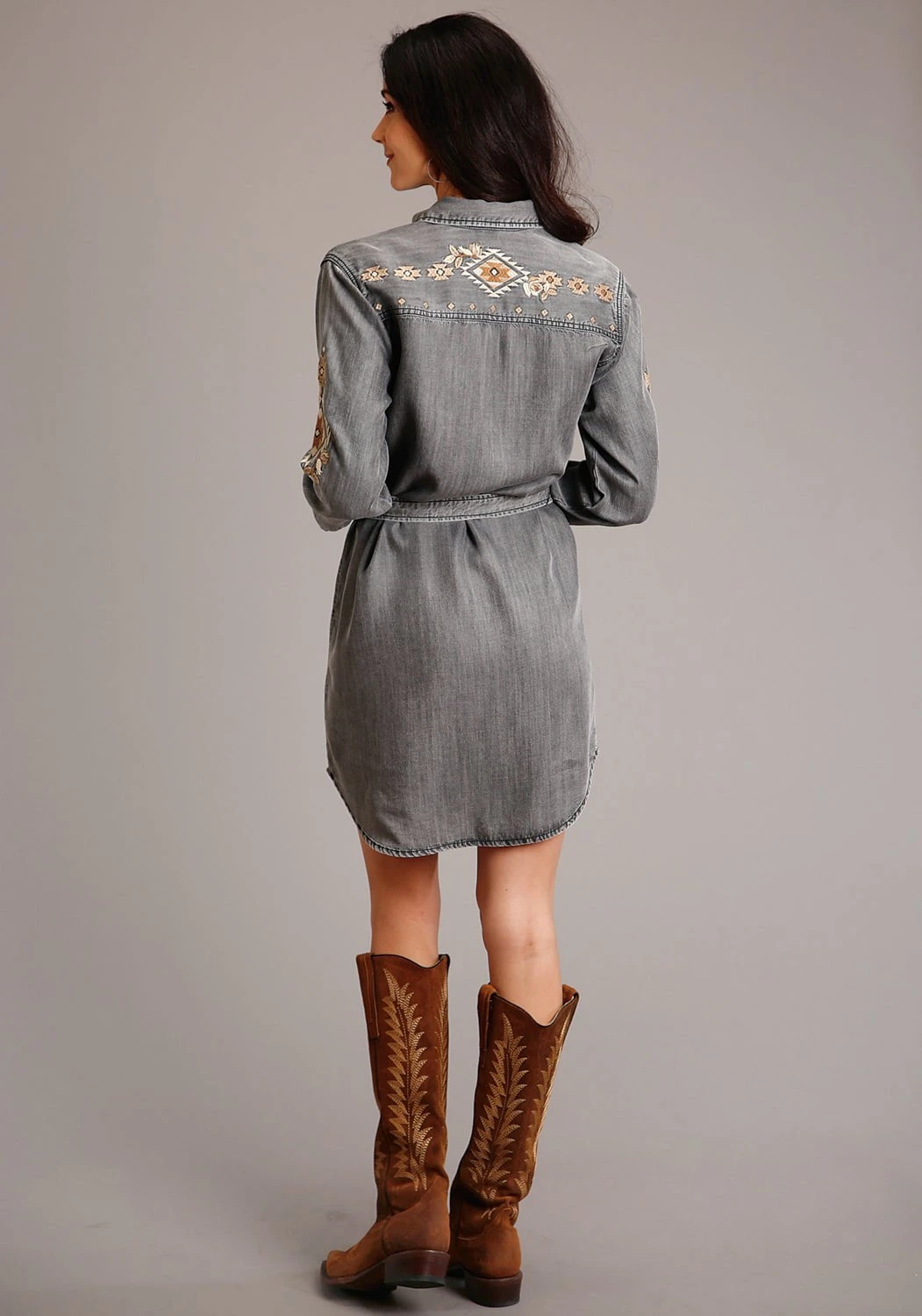 Stetson Womens Black Wash Denim Self Tie Snap L/S Western Dress