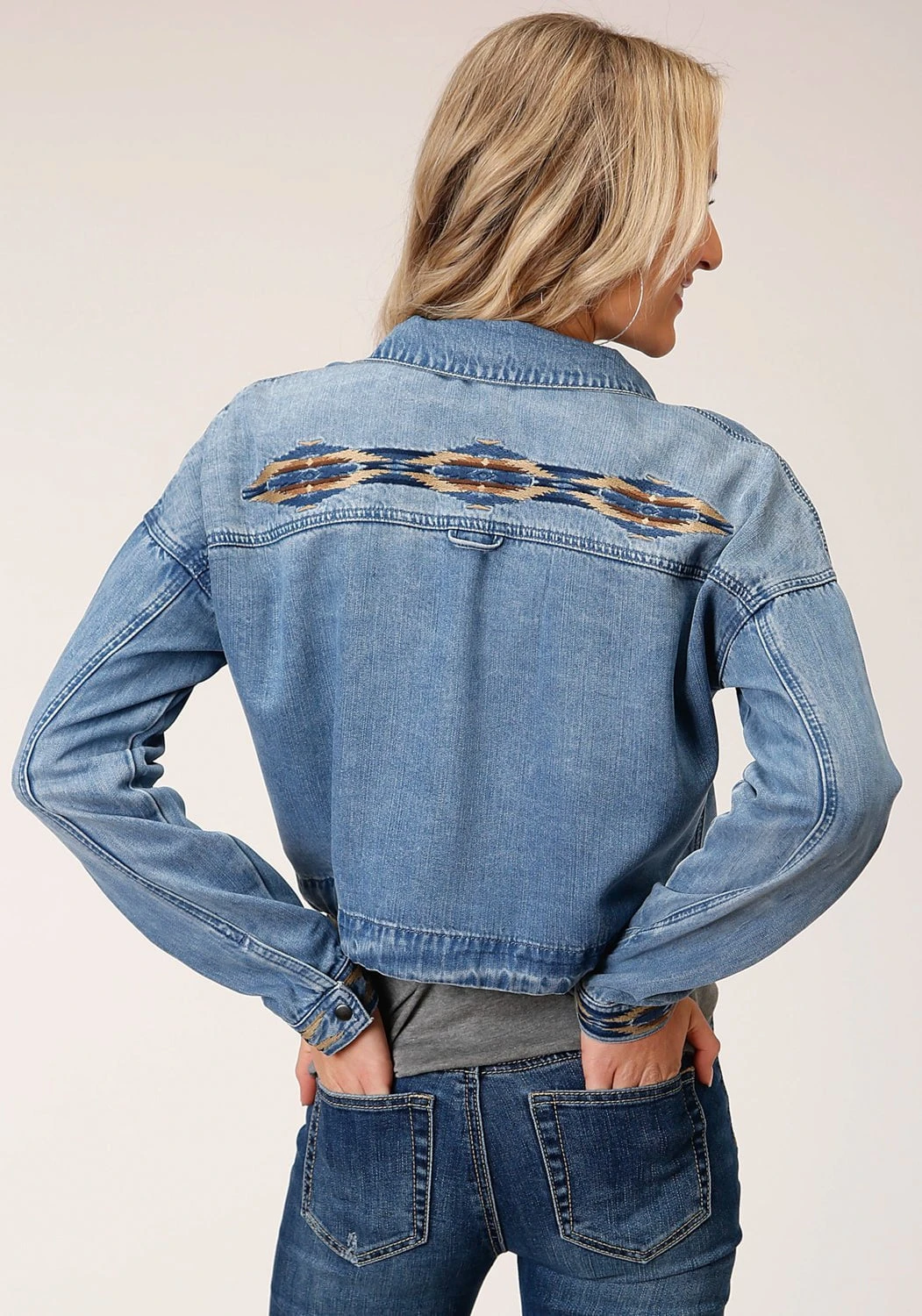 Stetson Womens Denim Denim Fold Down Stand Collar Jacket
