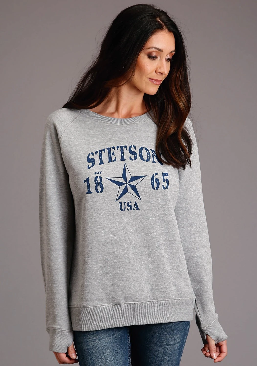 Stetson Womens Heather Grey Cotton Blend Star Sweatshirt