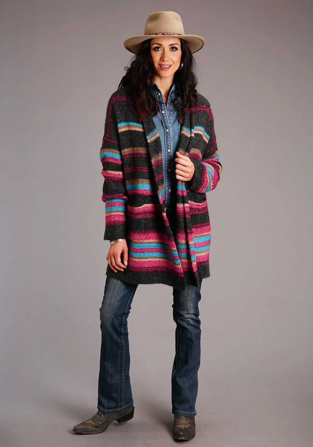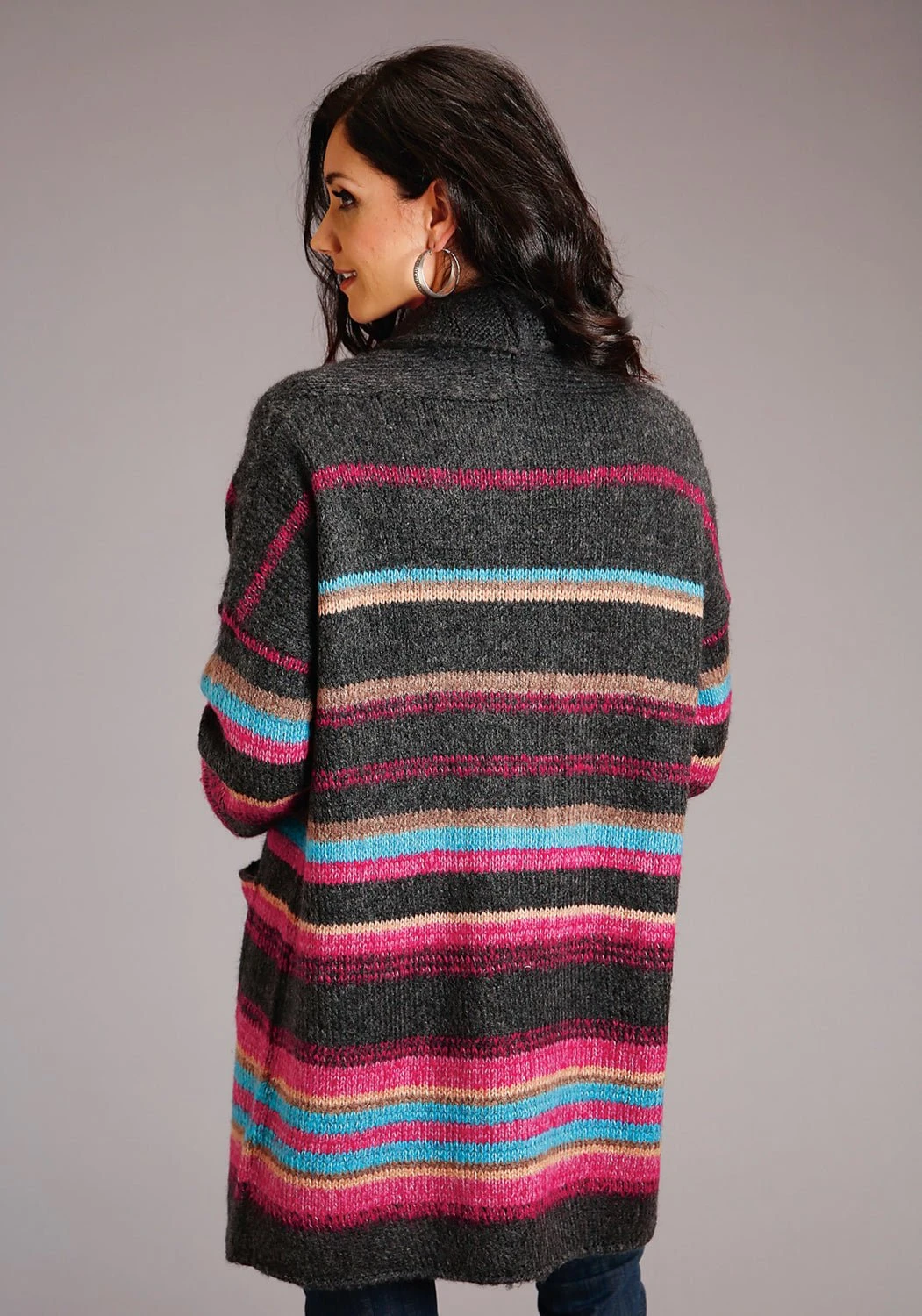 Stetson Womens Multi-Color Acrylic Blend Oversized Stripe Cardigan