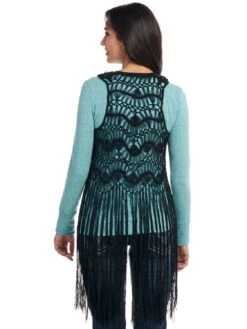 Cowgirl Up Womens Navy 100% Rayon Embroidered Kimono Cardigan