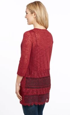 Cowgirl Up Womens Cardinal Cotton Blend Scalloped Lace Sweater