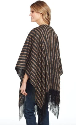 Cripple Creek Womens Black Multi Polyester Vertical Blanket Poncho